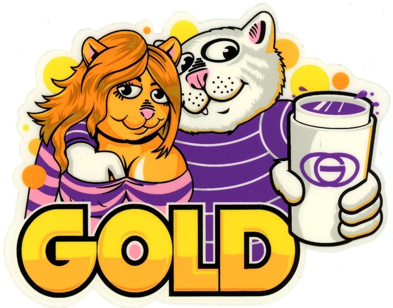 Gold Wheels Skateboard Sticker mit sexy Katzen Party und Schriftzug