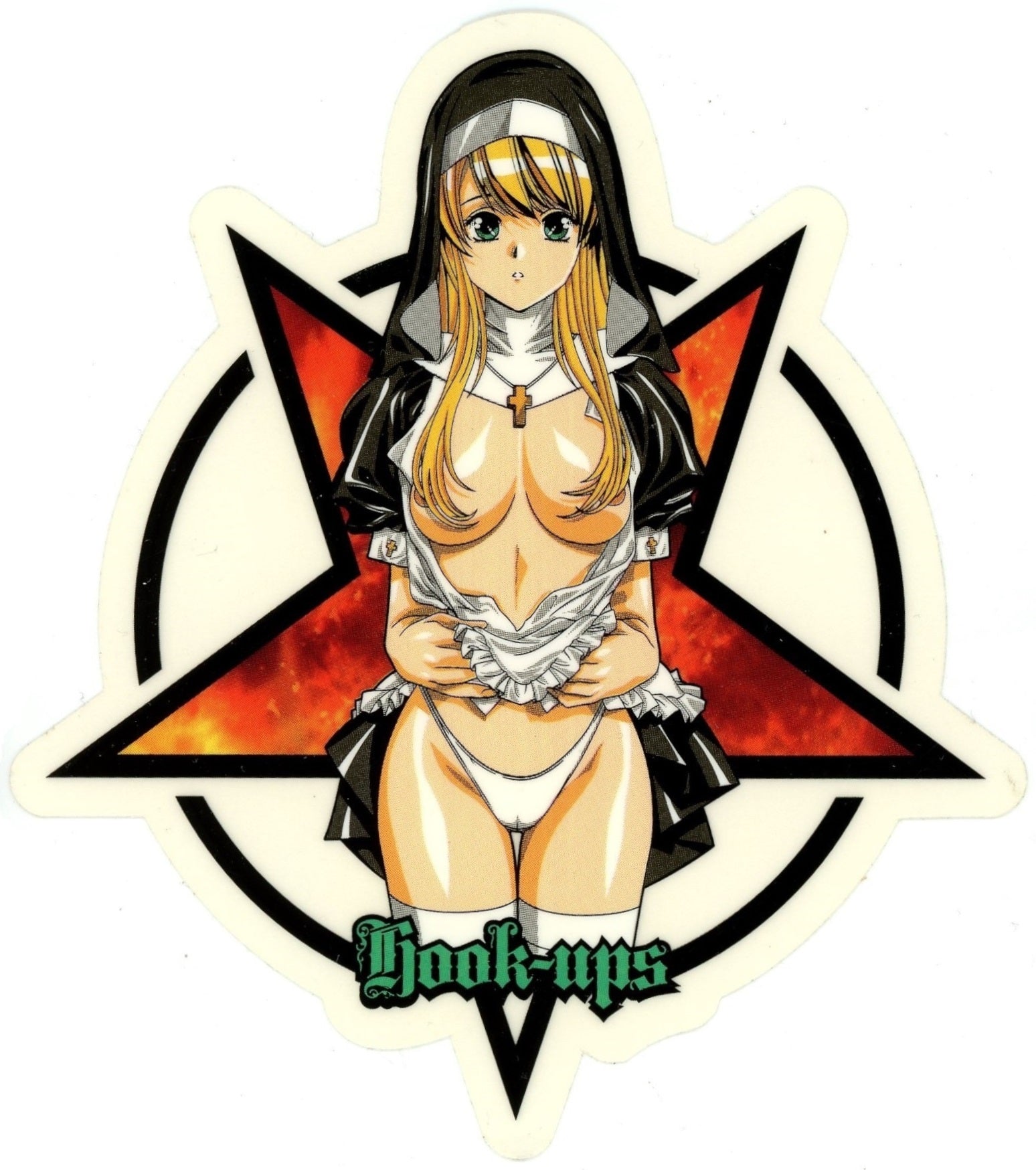 Hook Ups Skateboard Sticker mit sexy Nonne, Stern und Schriftzug