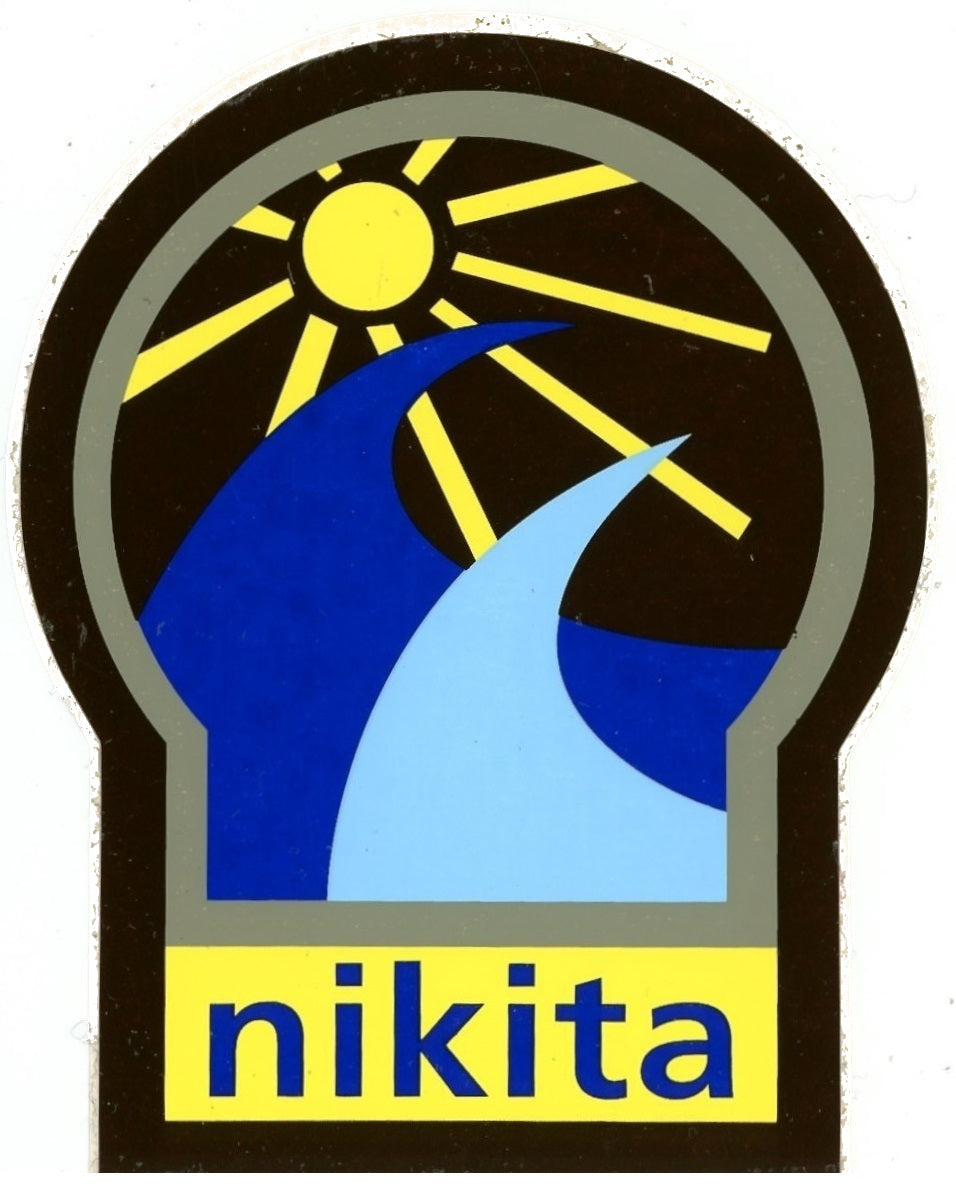 Nikita Skateboard Sticker mit Wellen, Sonne und Schriftzug. Original Old School Vintage !