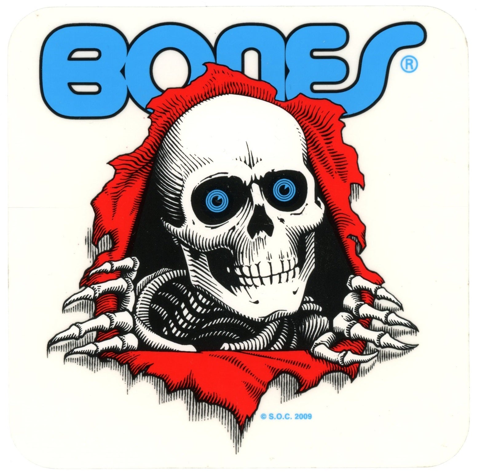 Powell Peralta Bones Brigade Skateboard Sticker mit Ripper Totenkopf Character und Schriftzug