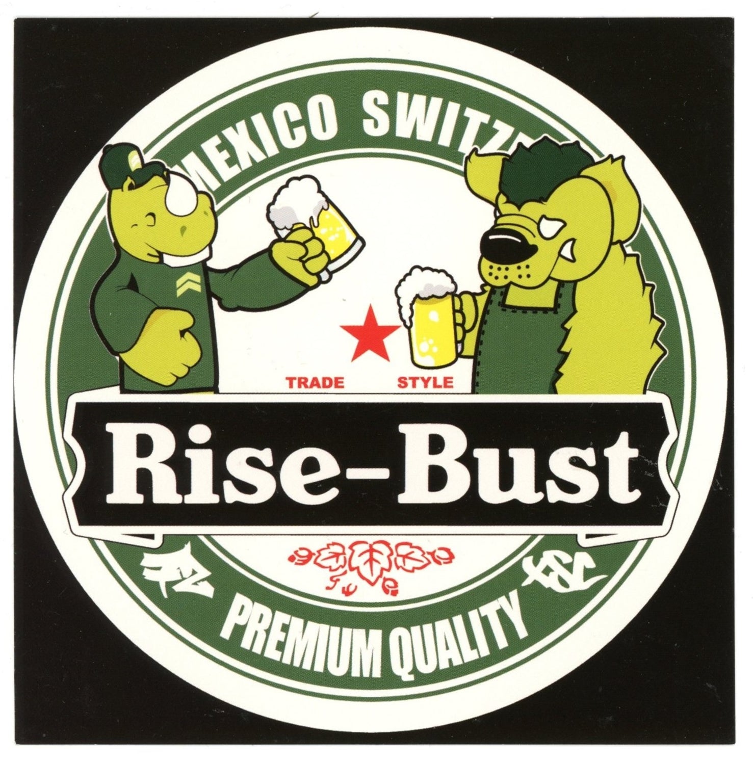 Rise & Bust Street Art / Urban Art Sticker mit Rhinozeros und Hund Character in Bier Label Style. Original Old School Vintage !