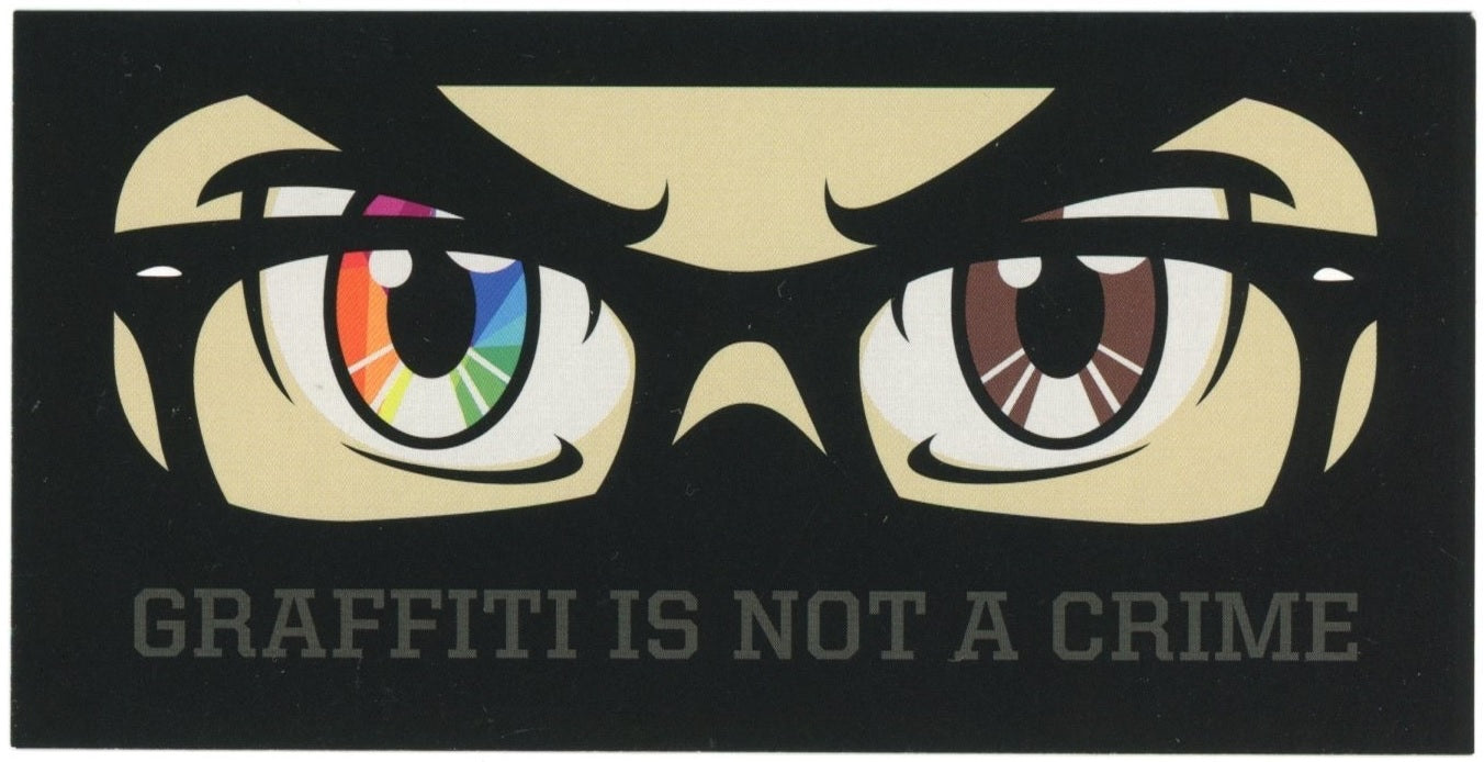 Street Art / Urban Art Sticker mit Augen und Graffiti Is Not A Crime Message