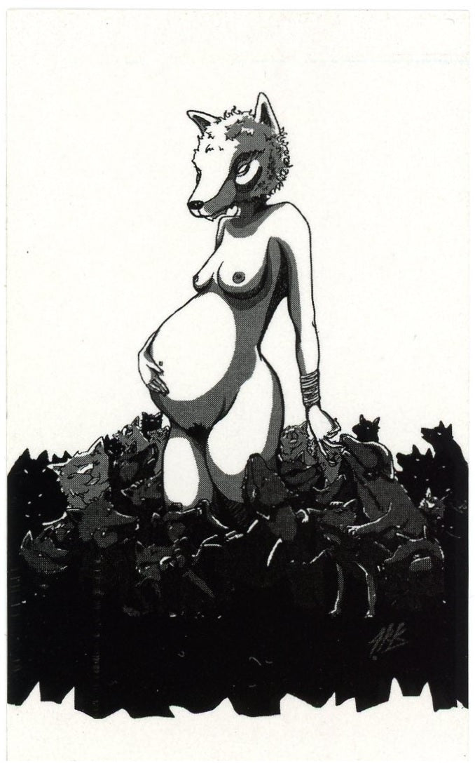 Street Art / Urban Art Sticker mit schwangerer Wolfsmutter Frau Character und Rudel
