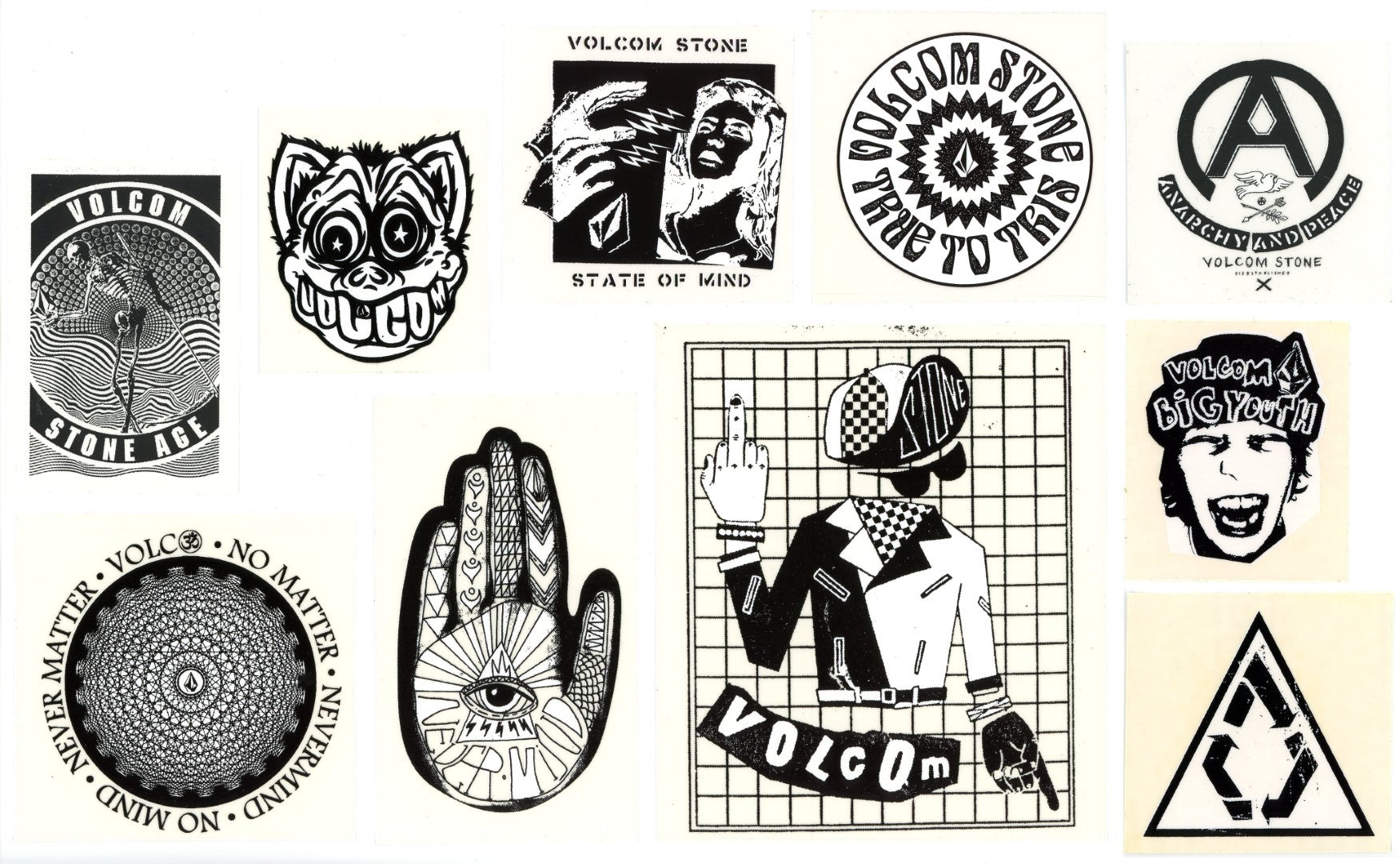 Volcom Skateboard 10 Sticker Set mit verschiedenen Designs und Messages