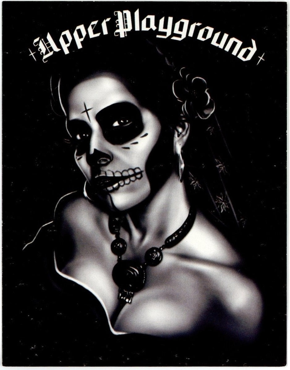 Upper Playground Streetwear Sticker mit Dia De Los Muertos Lady und Schriftzug